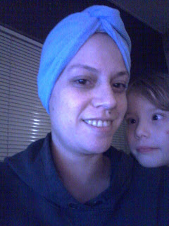 Take and twist your hair up and put on your shower cap, you can also use a hair towel to ensure you don't get any on your pillow and blankets.